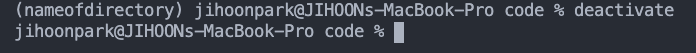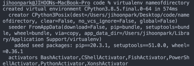 'nameofdirectory'에 원하는 가상환경 디렉토리 이름을 설정할 수 있다.